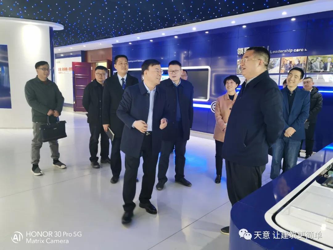 2021年2月23日, 市住建局黨組成員、副局長趙羽,市住建局節(jié)能與科技科科長孫新魯?shù)阮I(lǐng)導(dǎo)一行,在區(qū)住建局局長鄒紅, 區(qū)住建局行業(yè)發(fā)展科科長馬特等領(lǐng)導(dǎo)的陪同下,蒞臨天意座談并考察指導(dǎo)工作。天意機(jī)械董事長劉洪彬,總經(jīng)理劉海龍,國內(nèi)銷售部經(jīng)理秦艷慧等領(lǐng)導(dǎo)參加了座談?wù){(diào)研,并陪同參觀了天意省級(jí)研發(fā)中心、科技體驗(yàn)館、BIM技術(shù)在裝配式建筑中的創(chuàng)新應(yīng)用情況等。