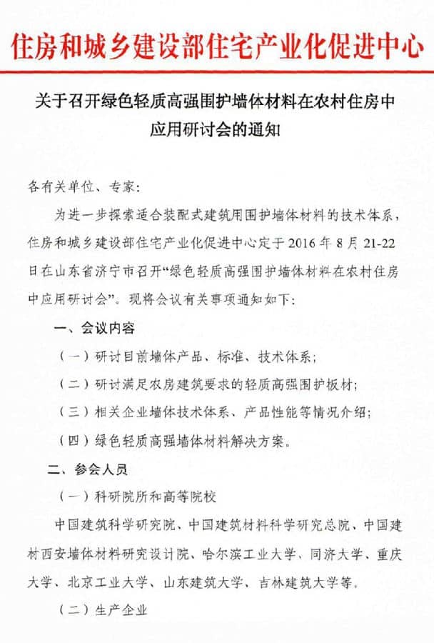 行業(yè)要聞:綠色輕質(zhì)高強(qiáng)圍護(hù)墻體材料在農(nóng)村住房中應(yīng)用研討會通知