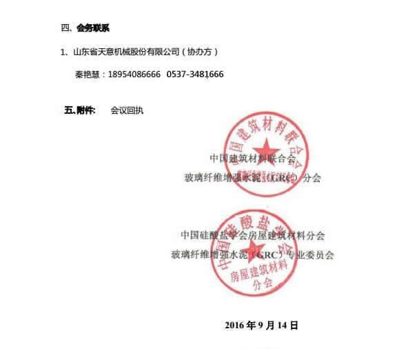 GRC 協(xié)會(huì)及 GRC 專業(yè)委員會(huì)(中國(guó)混凝土與水泥制品協(xié)會(huì) GRC分會(huì)、中國(guó)硅酸鹽學(xué)會(huì)房建材料分會(huì) GRC 專業(yè)委員會(huì))2016 年年會(huì)定于 11 月4-6 日在山東兗州圣德國(guó)際酒店舉行。本次年會(huì)將圍繞“GRC 技術(shù)創(chuàng)新與裝配式建筑”主題,交流。